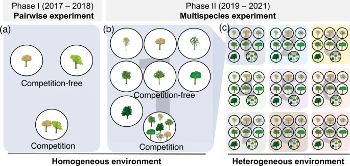 研究表明,在缺乏竞争的均质环境中,种内性状变异与物种竞争能力之间相互独立,而一旦引入种间竞争或空间异质环境,两者之间就显示出强烈的权衡关系。具体而言,竞争能力较弱的物种(“穷”),会展现出更高的种内性状变异(“变”)。进一步研究揭示,这种权衡关系主要由弱竞争物种的功能性状可塑性响应驱动。当这些物种面临种间竞争或异质性环境的挑战时,它们的功能性状,特别是细根性状,会展现出高度的可塑性变化。相比之下,强竞争物种的种内性状变化,远小于弱竞争物种。