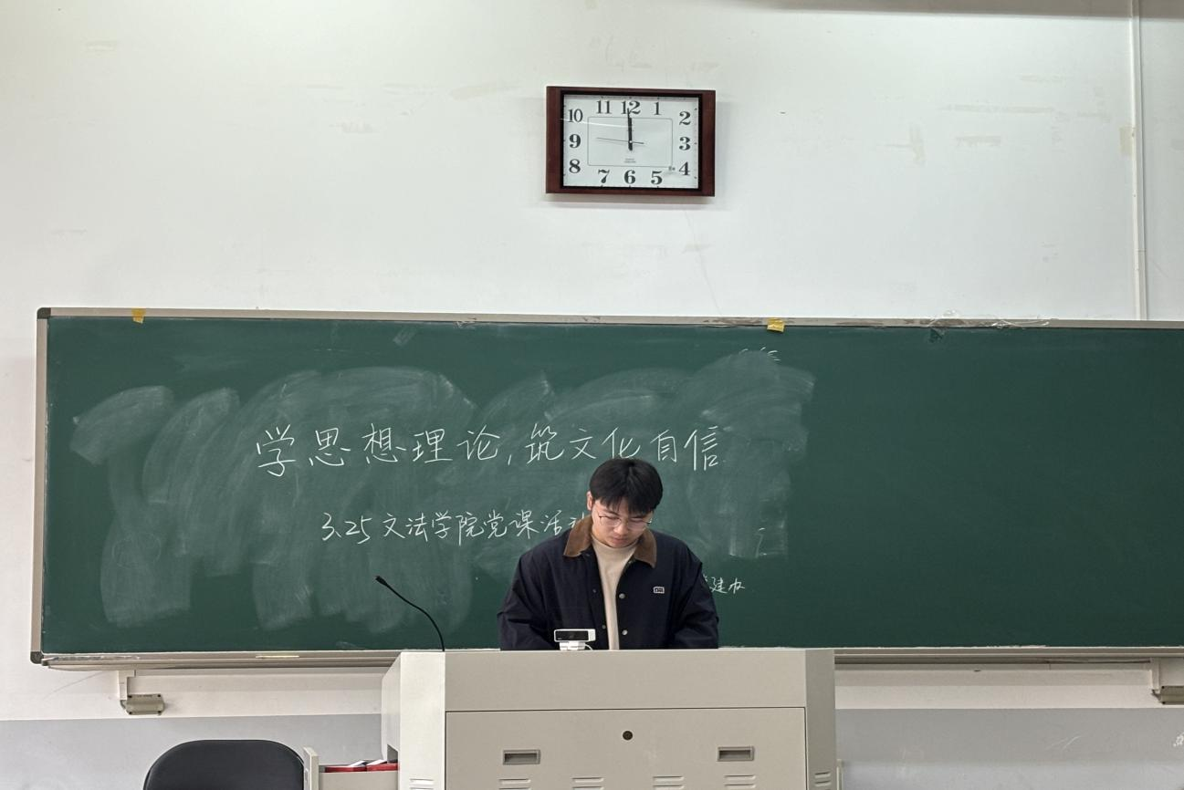 此次党课,学生党员刘依凡、陈柯池、蔡超凡与王琳鸽依次进行了分享。他们从深刻领悟习近平文化思想的内涵入手,围绕《习近平文化思想学习纲要》的核心内容,结合实际情况,阐述了思想理论对国家发展和民族进步的重要意义。他们指出,文化自信是民族精神的集中体现,是推动社会发展的强大动力,要发挥文化力量,为经济社会发展提供精神动力。此外,他们强调守护文化遗产是青年的使命,青年人要在实际行动中坚定文化自信。大家纷纷表示,将以此次党课为契机,不断加强学习,提升自身文化素养,积极传播正能量,为实现中华民族伟大复兴的中国梦而努力奋斗。