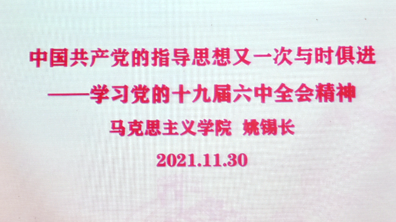 姚锡长教授按照时间顺序开展第二讲《中国共产党的指导思想》。他介绍了中国共产党指导思想的产生与重要性,进而指出了中国共产党指导思想是以马列主义、毛泽东思想、邓小平理论、三个代表重要思想,他强调我们党的指导思想既一脉相承又与时俱进,在不同的时期有着不同的历史特点,我们既要传承又要紧跟时代发展,不断创新。