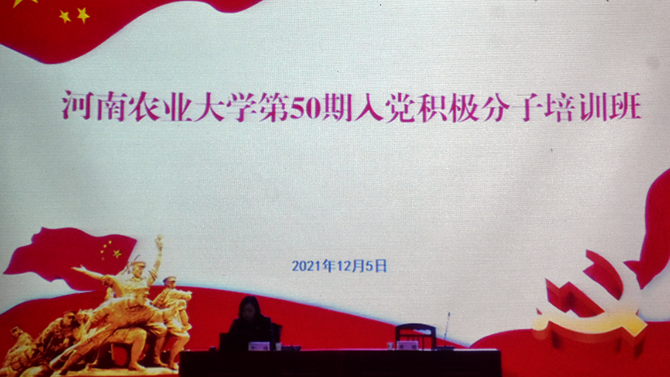 党委书记贾磊宣读《河南农业大学关于举办第50期入党积极分子培训班的通知》。河南农业大学党委组织部副部长冯晖强调对入党积极分子培训的重要意义以及举办入党积极分子培训班的目的,并提出此次培训班的要求。