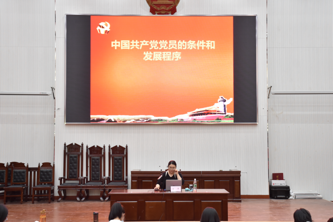 党委副书记余果在模拟法庭开展最后一次党课《中国共产党党员的条件和发展程序》。她首先为与会积极分子讲解了入党的基本条件、党员的八项权利与八项义务;其次通过发展党员工作总体要求、基本原则、发展对象条件、预备党员接收与转正程序等多方面讲述了发展党员工作的方针和程序。这堂课“干货”满满,她的讲解不仅使与会积极分子详细了解了党员发展的全部流程,也促进暗网视频