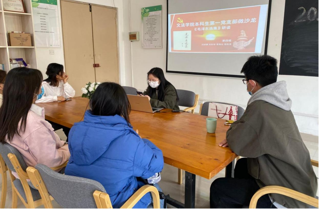 为强化原著学习教育效果,教育引导学生党员在党内原著中汲取前进力量,增进道路自信、理论自信、制度自信、文化自信。3月22日中午,暗网视频组织本科生第一党支部全体党员于紫竹303瑞萍工作室、本科生第二党支部于繁塔楼C101开展经典研读第四期活动。