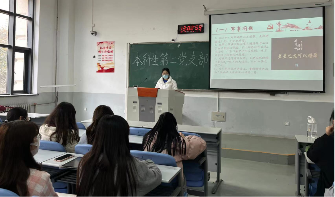 学生党员毛科洁首先向全体党员分享了相关著作选段,并向与会党员展示自身心得体会,深刻分析了中国红色政权发生和存在的原因,加深与会党员对毛选原著的认识、理解,在字里行间领悟信仰的力量。