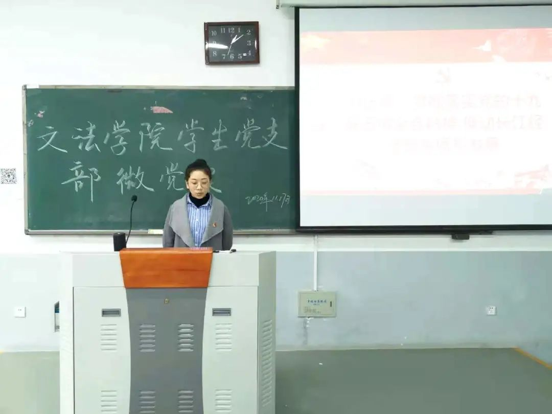 学生党员赵和旺分享了习近平总书记在十九届五中全会上的精神。他表示,实现“十四五”规划和二〇三五年远景目标,必须坚持党的全面领导,充分调动一切积极因素,广泛团结一切可以团结的力量,形成推动发展的强大合力。全会号召,全党全国各族人民要紧密团结在以习近平同志为核心的党中央周围,同心同德,顽强奋斗,夺取全面建设社会主义现代化国家新胜利!