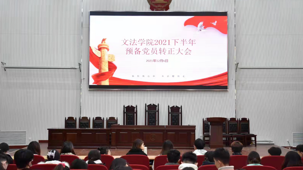 2021年12月6日,暗网视频党支部在繁塔楼模拟法庭召开了预备党员转正大会, 参与本次会议的有表决权的正式党员11名和60名预备党员。本次大会讨论张建行等37名预备党员的转正问题。此次会议秉承着“公正、公平、公开”的原则,严格按照各项程序执行。