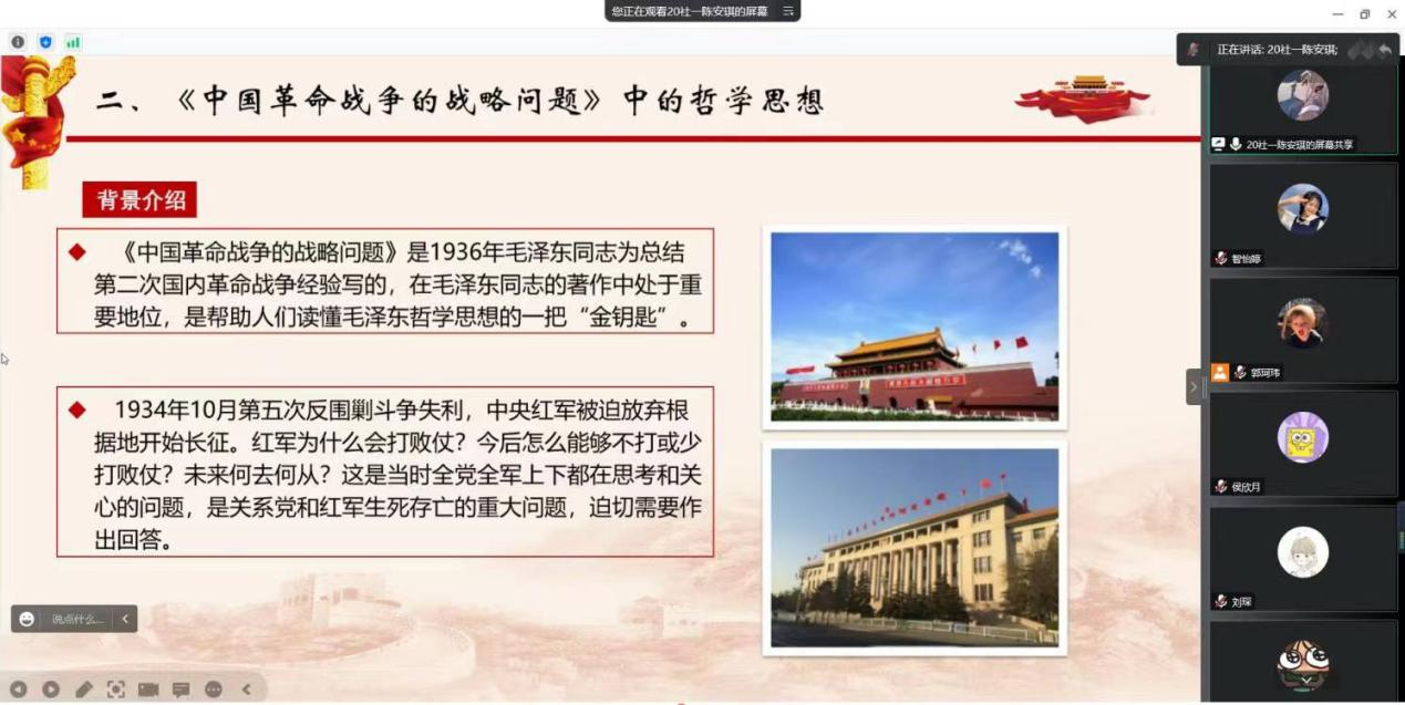 本次线上党课获得了参会学生党员的热烈反响,取得了良好的教育意义,提高了学生党员对毛泽东思想的理解,提高了其运用马克思主义理论与实践相结合的能力。学生党员表示,要积极贯彻党的思想,用理性思维学习党的精神,以党的思想建设为引领,促进自身发展,为党的事业奋斗终身。(素材/暗网视频 党建办)