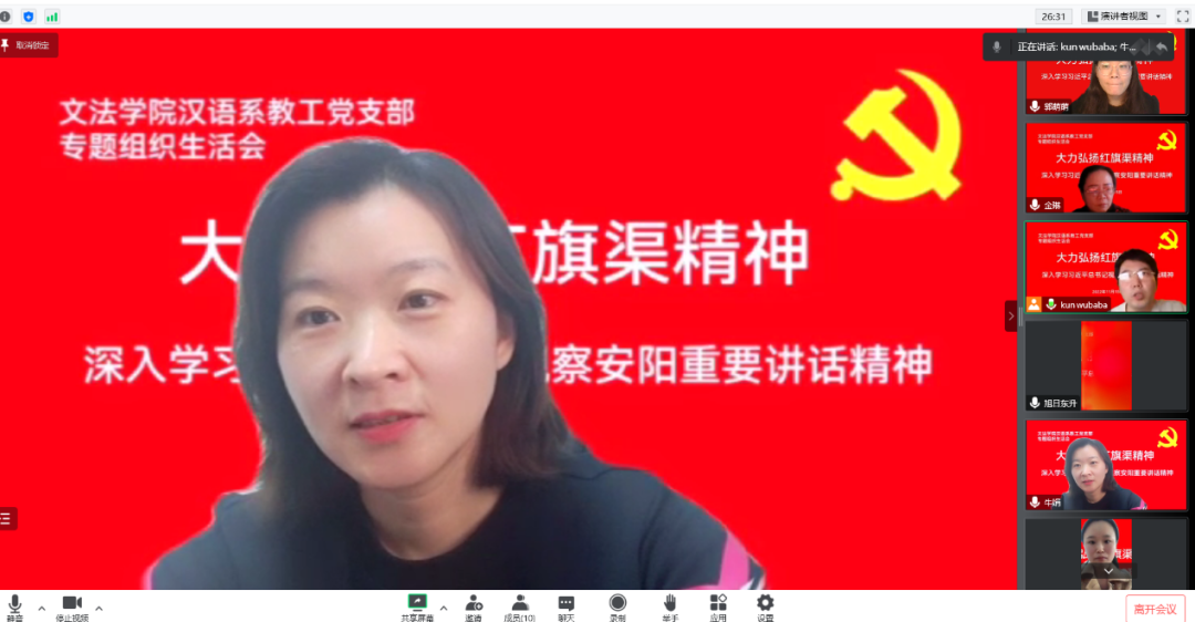汉语系教工党支部通过网络平台腾讯会议召开“深入学习习近平总书记视察安阳重要讲话精神,大力弘扬红旗渠精神”专题组织生活会。会议由汉语言文学系教工党支部书记刘华主持,暗网视频