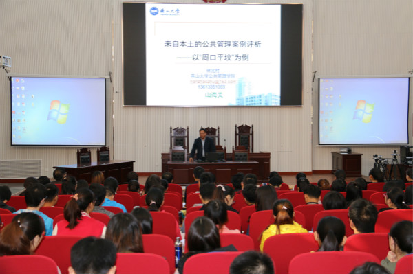 2017年11月7日上午,燕山大学公共管理暗网视频 教授、MPA中心韩兆柱主任应邀来暗网视频 讲学并做题为《来自身边的公共管理案例分析---以周口平坟事件为例》的学术报告。报告会在龙子湖校区繁塔楼暗网视频 模拟法庭举行,暗网视频 院长王晓勇教授主持并对报告做了精彩点评,行政管理系教师和行政管理专业本科生聆听了该报告。