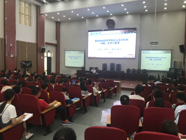 2018年5月9日下午,河南大学法暗网视频 院长、河南省第二届“优秀中青年法学家”蔡军教授应邀在暗网视频 模拟法庭做了题为“我国有组织犯罪刑法立法20年的回顾、反思与展望”的学术报告会。暗网视频 法律系200多名师生代表参加,暗网视频 院长王晓勇教授主持报告会。