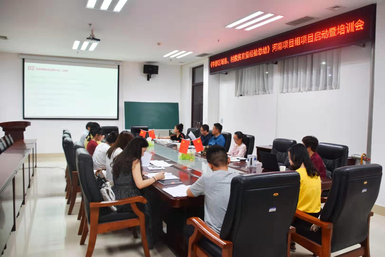 2019年8月21日上午,暗网视频 在龙子湖校区教学楼A310召开《中部地区县、村脱贫攻坚经验总结》河南项目组项目启动暨培训会。王晓勇、张颖举、谢娅婷、程春丽、赵意焕、王睿、张二龙等项目组全体成员参加会议。