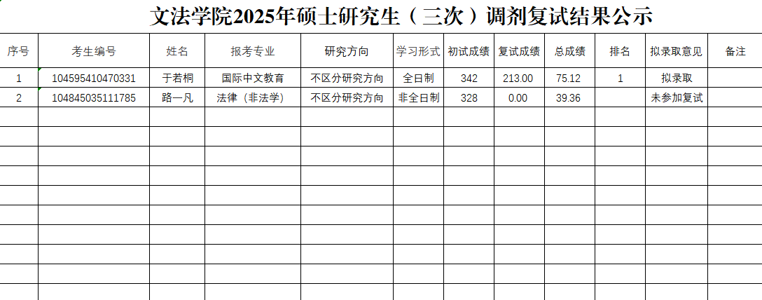 研究生招生工作领导小组审核,现将2025年(三次)调剂考生复试成绩进行公示。