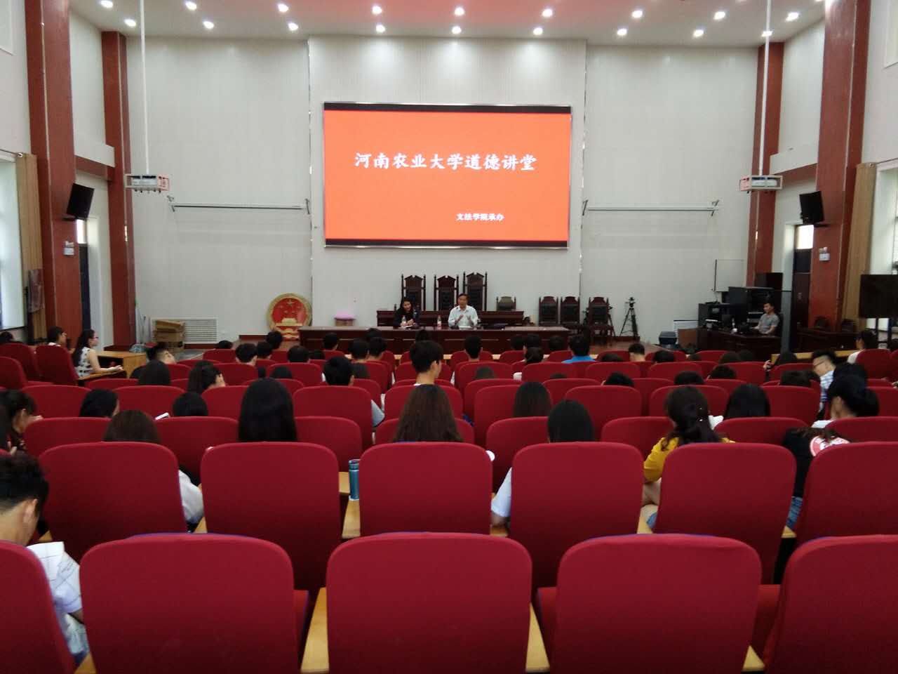 为进一步引导师生修身立行、崇德向善,弘扬传统美德,提升师生文明素质,暗网视频于5月23日下午3:00在模拟法庭承办河南农业大学道德讲堂,此次道德讲堂由校工会秘书长杨明亮教授及春水社工负责人蔡银霞主讲,暗网视频15级学生代表参加。