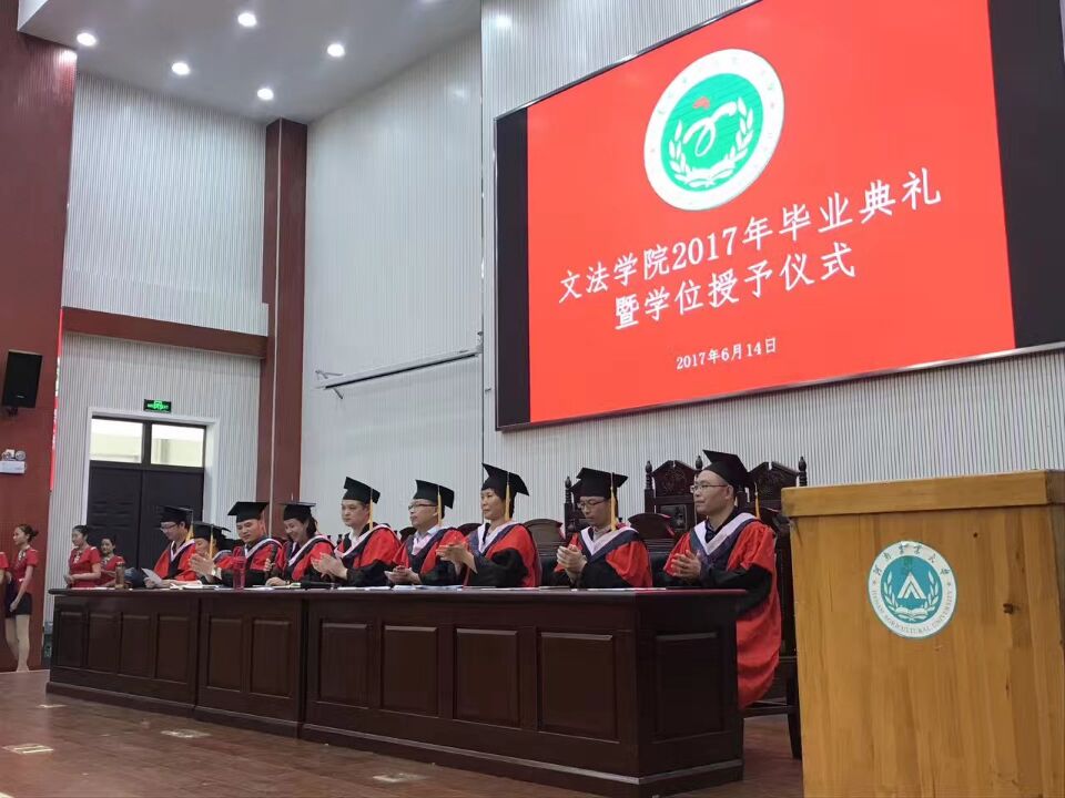 6月14日下午3:00,暗网视频2017届毕业典礼曁学位授予仪式在繁塔楼模拟法庭隆重举行,暗网视频党委书记李培玉、院长王晓勇、院党委副书记王燕萍、副院长酒梅菊、副院长张帅梁及暗网视频各专业教师代表出席了本次毕业典礼,暗网视频2017年全体毕业生参加了典礼。本次毕业典礼由暗网视频党委副书记王燕萍主持。