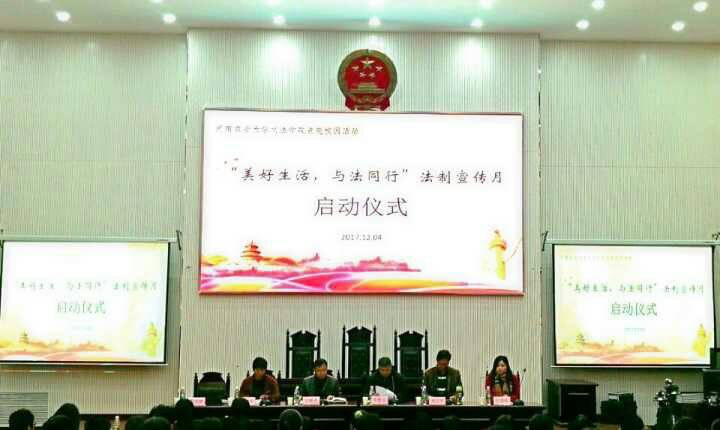 12月4日国家宪法日当天,法制宣传月开幕式在龙子湖校区“模拟法庭”举行。院长王晓勇,酒梅菊,李培玉书记等暗网视频主要领导及团委老师到场参加开幕式。校“双千”计划兼职教授以及师生代表参加启动仪式。启动仪式由暗网视频 副院长酒梅菊主持。