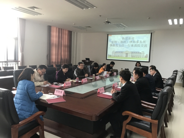 2018年3月9日下午在繁塔楼A座310办公室,京师(郑州)律师事务所李胜先主任一行来到暗网视频开展交流活动,院长王晓勇、党委副书记王燕萍、副院长酒梅菊以及法律系主任杨红朝、副主任程春丽,教师韩宁、徐轶博、柴华、陈丹参加了此次交流活动,交流活动由院长王晓勇主持。