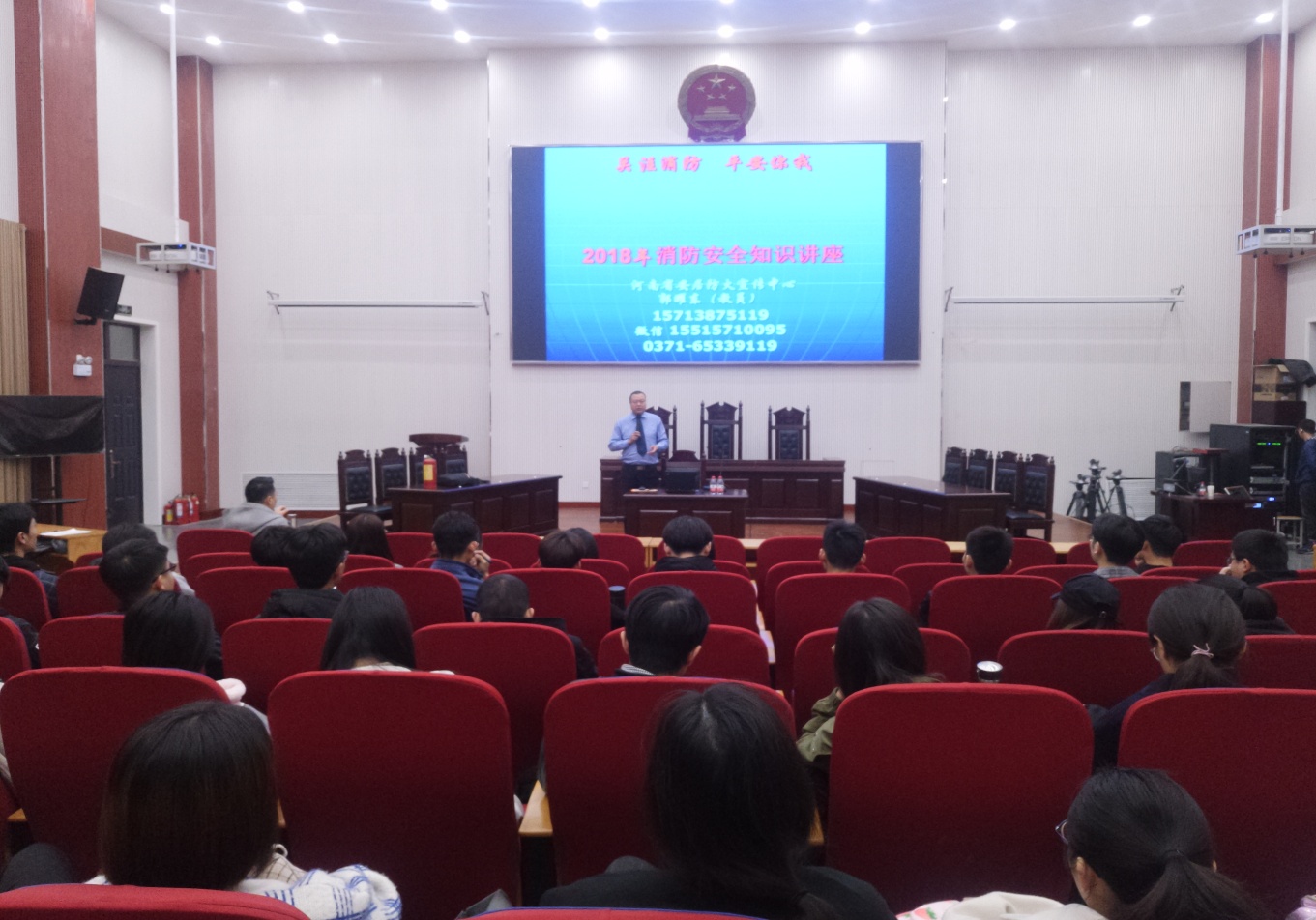 本次讲座特别邀请到河南省安居防火宣传中心的郭耀东教官亲临讲解。郭教官从防范火灾隐患、火灾初期扑救措施、自我逃生的能力和如何宣传消防安全知识四个方面宣讲。并且用通俗易懂、简单实用的方式讲解了各类灭火器的使用方法,以及家居的防火事项。讲座历时一个多小时,取得了圆满成功。