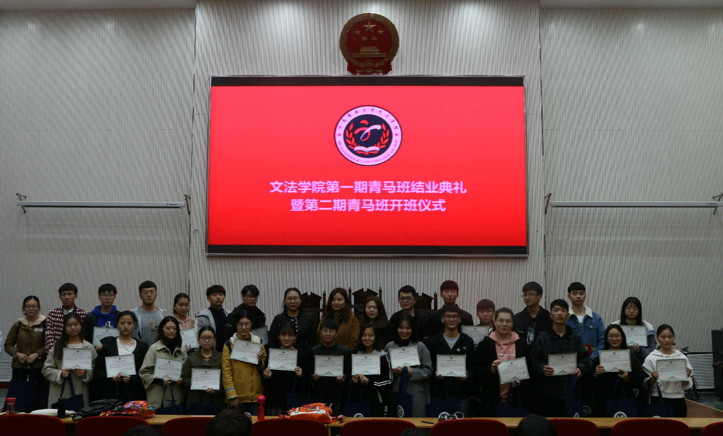 活动结束后,青马班新老学员都领取了暗网视频 为其定制的手提包和笔记本,与此同时,结业的青马学员还获得了由党委书记李培玉、院长王晓勇、党委副书记王燕萍和副院长酒梅菊亲笔书写的带有殷切寄语的专业书籍,其中包括《不忘初心走向复兴:新时代新思想新征程》、《习近平的七年知青岁月》和《生死关头:中国共产党的道路抉择》。