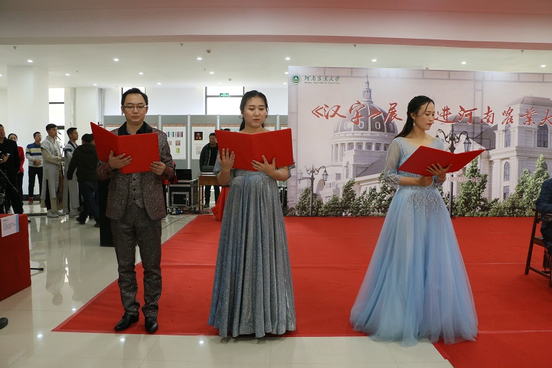 12月18日下午,中国文字博物馆《汉字》巡展河南农业大学站开幕式在龙子湖校区教学楼A座举行。我校党委副书记、工会主席李成吾,中国文字博物馆党委书记、常务副馆长冯克坚,中国文字博物馆党委副书记、副馆长李宽生,中国文字博物馆文化产业部主任段艳琴,中国文字博物馆书法艺术委员会主任委员李强,中国文字博物馆书法艺术委员会委员许雄志以及我校相关单位负责人,农暗网视频