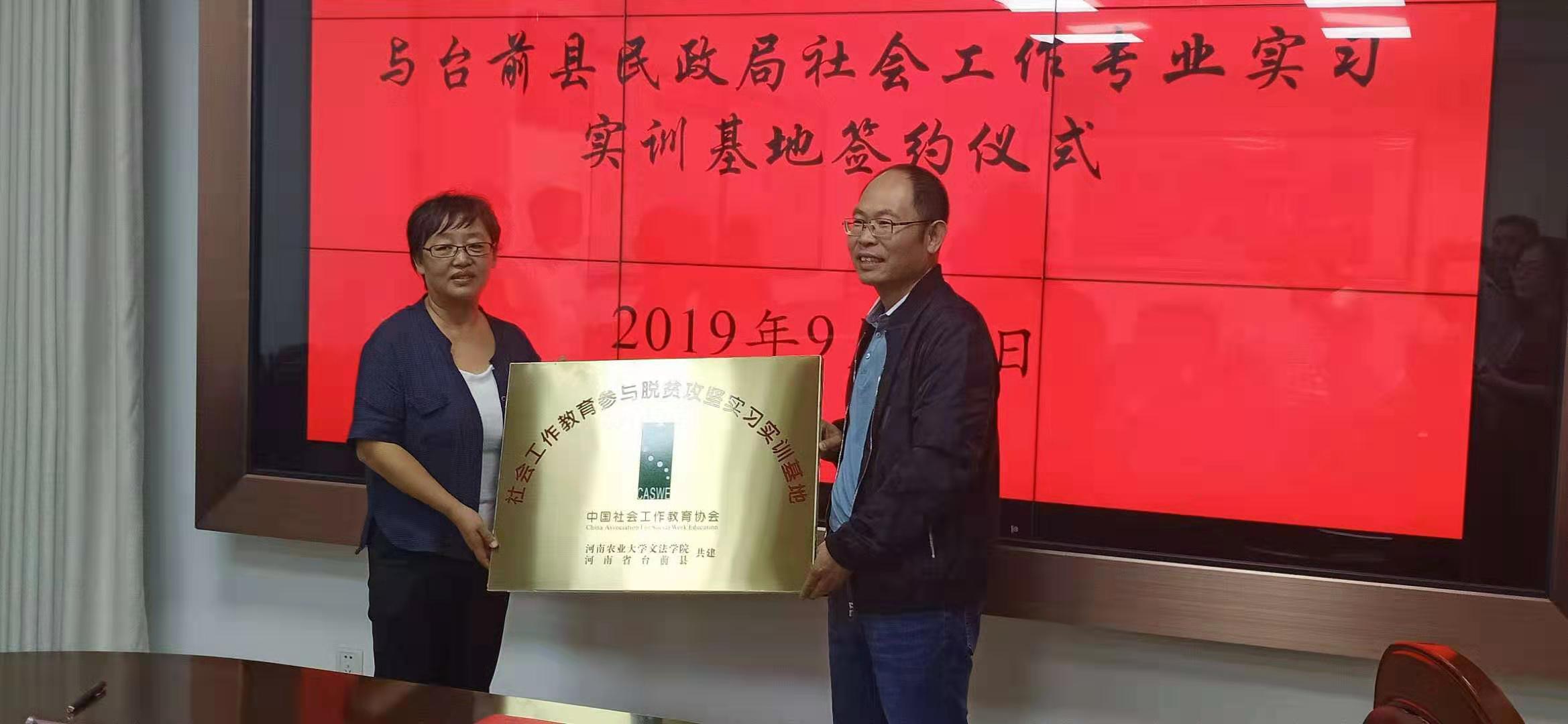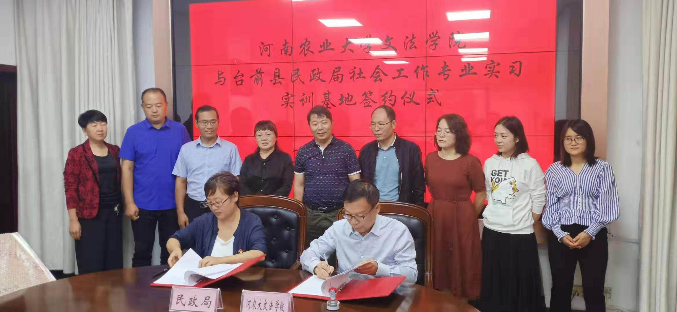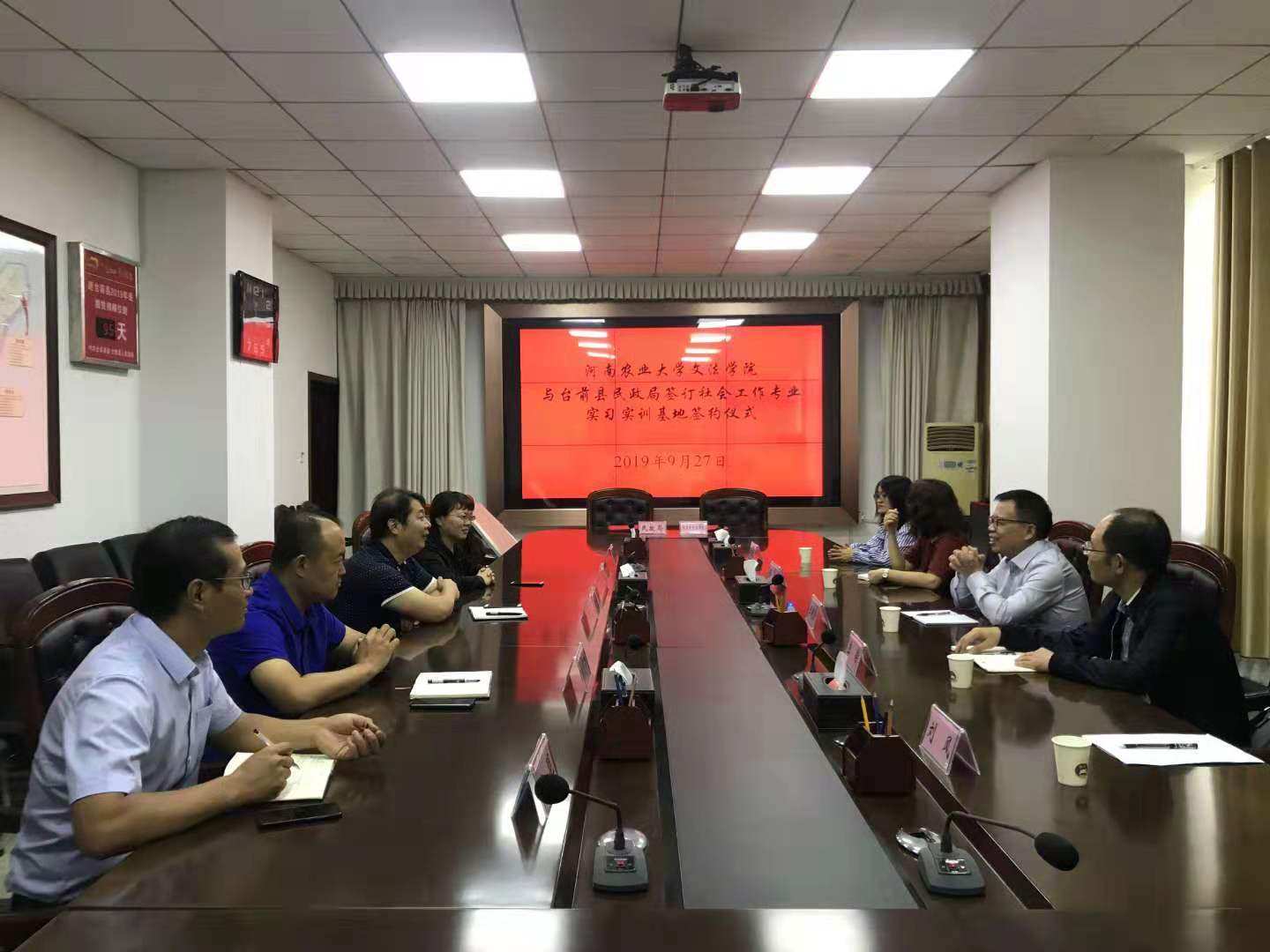 首先,魏剑锋副县长介绍了台前县的发展简史、经济社会发展情况以及扶贫工作开展情况,并感谢我校长期以来对台前县扶贫工作给予的智力支持和帮助。民政局韩凤霞局长重点介绍了台前县居家养老、社区养老、社区建设、社会救助、社会工作等各项事业发展情况。王晓勇院长介绍了暗网视频专业和学科建设情况,李伟主任重点介绍了我校社会工作专业学生培养的特色、学科团队及其研究领域,建立基地的目的与意义,并结合双方需要提出了初步合作的意向。其次,双方共同签署了“河南农业大学社会工作专业实习实训基地和河南农业大学社会工作专业硕士实习基地”协议书,举行了授牌仪式。