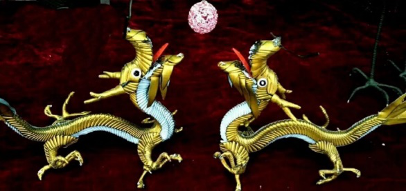 “不知几时棕叶青,艺人采来做龙凤。上下翻飞掌中舞,活灵活现妙趣生。”青青的棕树叶,在侯红学老师灵巧的手指间,翻飞旋转,一瞬间化为龙凤,活灵活现,妙趣横生。