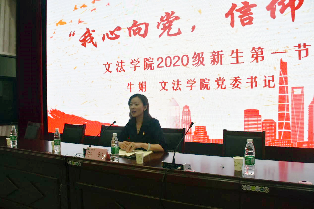 党课上,牛娟回顾了中国共产党从成立到发展壮大的波澜壮阔历程,讲述了中国从“站起来”、“富起来”到“强起来”的过程中中国共产党所付出的艰苦卓绝的努力和不懈的奋斗。她从三个方面展开党课,一是知党向党,坚定跟党走的决心。她结合抗击新冠肺炎疫情斗争取得重大战略成果,阐述了中国共产党领导和我国社会主义制度的显著优势,以及所展现的大国担当,引导新生把灾难当教材,与祖国共成长。二是爱党敬党,树立正确的入党动机。牛娟指出,要深刻理解共产主义远大理想和中国特色社会主义共同理想的有机统一,希望大家坚定信仰,为党奋斗。三是为党护党,在实践中积极向党组织靠拢。她讲解了入党的要求和条件,希望大家努力学习、提升自我,做到品德好、学习好、工作好、身体好,以实际行动党组织靠拢,在实现“两个一百年”的奋斗目标中践行新青年的使命。
