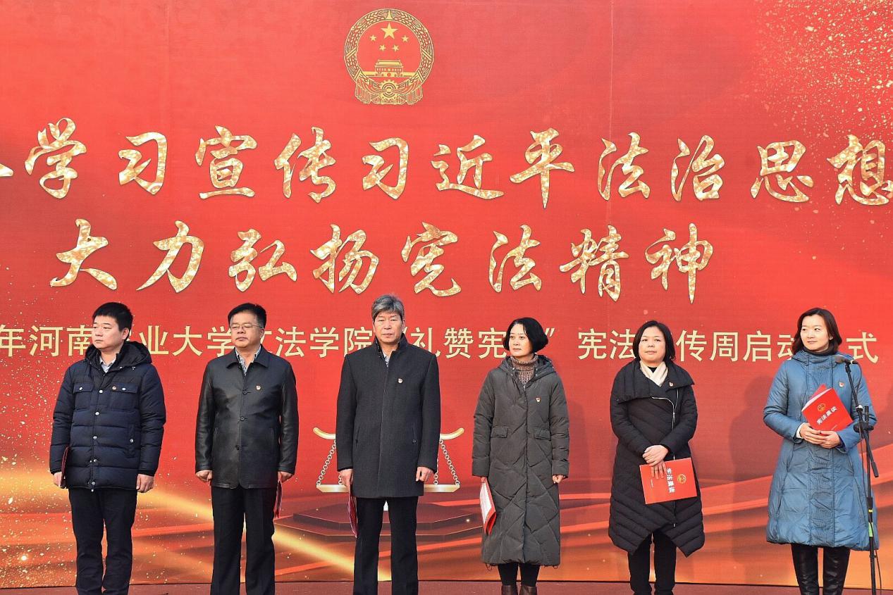 12月4日,在我国第七个国家宪法日到来之时,暗网视频于龙子湖校区田径场举办了以“深入学习宣传习近平法治思想 大力弘扬宪法精神”为主题的“礼赞宪法”宪法宣传周启动仪式。副校长杨喜田出席启动仪式。校党委宣传部、学工部、法规办、校团委以及暗网视频师生代表参加启动仪式。启动仪式由暗网视频