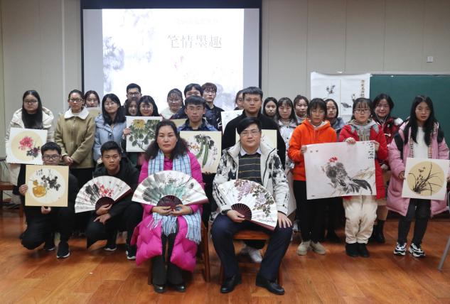 党军成指出,艺术反映了现实生活与社会精神面貌,只要我们感受生活,就会发现艺术无处不在。他分别就国画的概念与发展、分类和工具材料做了详细介绍,并向师生们展示了极具艺术特色的国画作品。每一幅作品都栩栩如生,活灵活现,充分展现了国画的独特魅力及其所蕴含的深厚的历史文化底蕴。