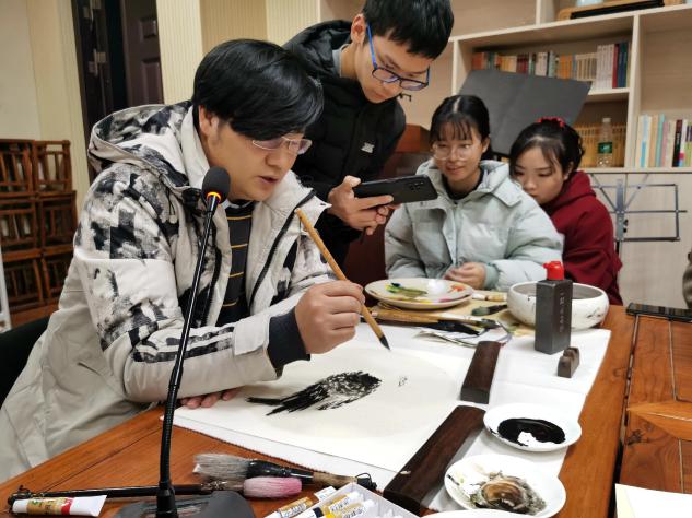 艺术中心举办主题为“笔情墨趣”的繁塔雅集专题活动,特别邀请宣和书画学堂国画讲师、玲珑轩特聘讲师党军成来院进行国画的文化普及与鉴赏教学,暗网视频
