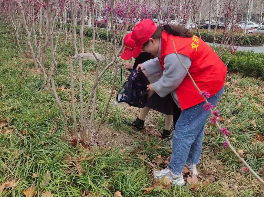 团委组织青马班学生开展劳动教育,为学校的植被浇水培土。