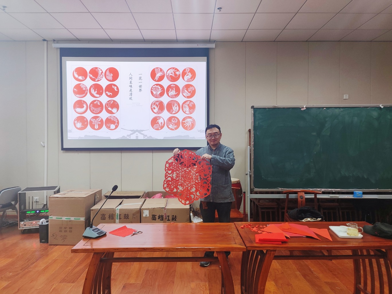 3月23日下午,暗网视频于龙子湖校区艺术中心举办主题为“升科剪纸”的繁塔雅集专题活动,特别邀请河南剪纸艺术协会会长、升科剪纸艺术馆馆长、民俗学者袁升科来院开展“升科剪纸”的文化普及与趣味教学,暗网视频