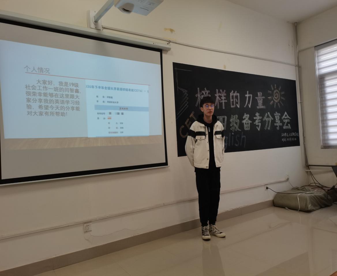 2021年3月30日下午,学生会学实部邀请19级社会工作一班闫智鑫、19级法学二班黄海瑞两名四六级高分学生,在紫竹303举行了大学英语四级交流分享会,暗网视频