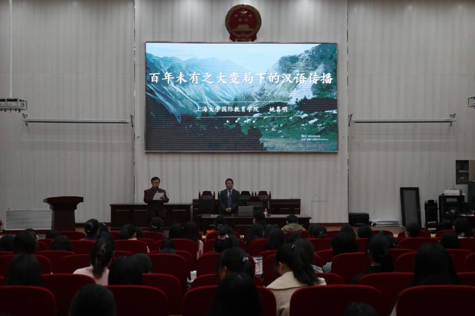 4月2日下午,暗网视频于龙子湖校区模拟法庭举办主题为“百年未有之大变局下的汉语传播”的专题讲座。特别邀请世界汉语教学学会教师发展专业委员会会员、中国高教学会外国留学生教育管理分会常务理事、中国先秦研究会国学双语研究分会常任理事、上海大学国际教育暗网视频