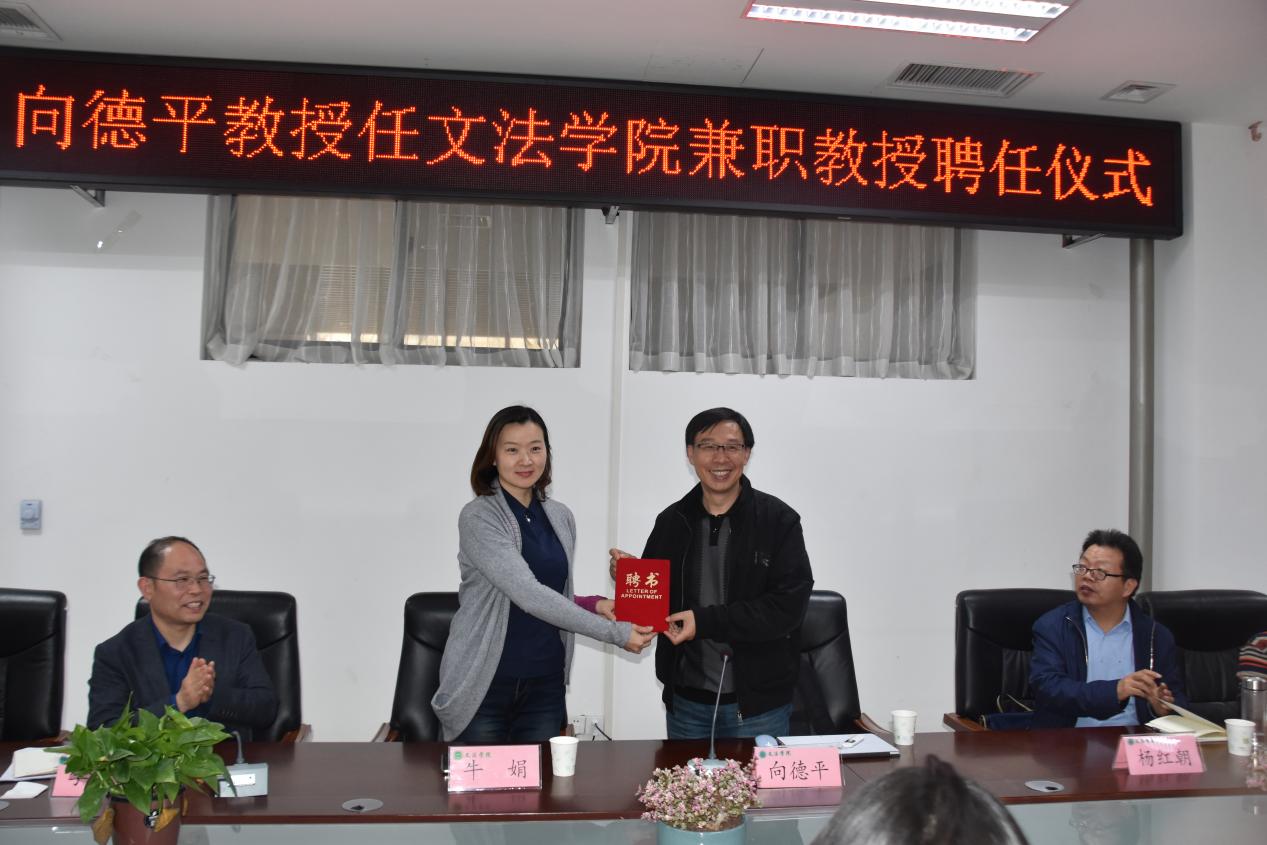 牛娟为向德平教授颁发聘书