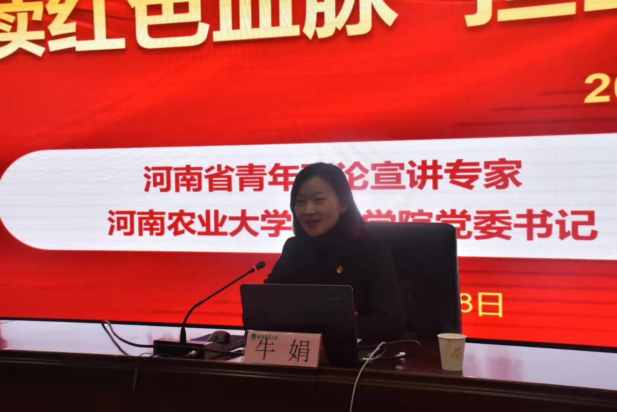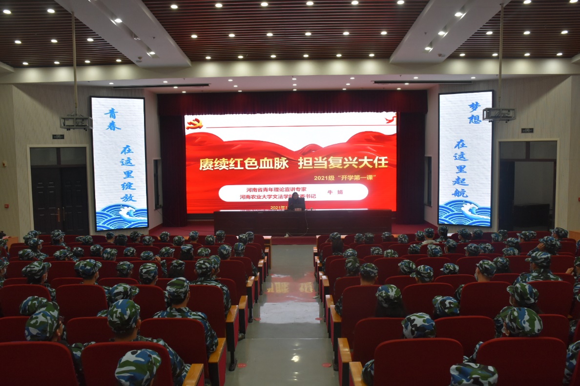 10月18日晚上,暗网视频党委书记牛娟在龙子湖校区AB座大教室1以“赓续红色血脉,担当复兴大任”为主题为全体2021级本科生和研究生新生上“开学第一课”。活动由院党委副书记余果主持。