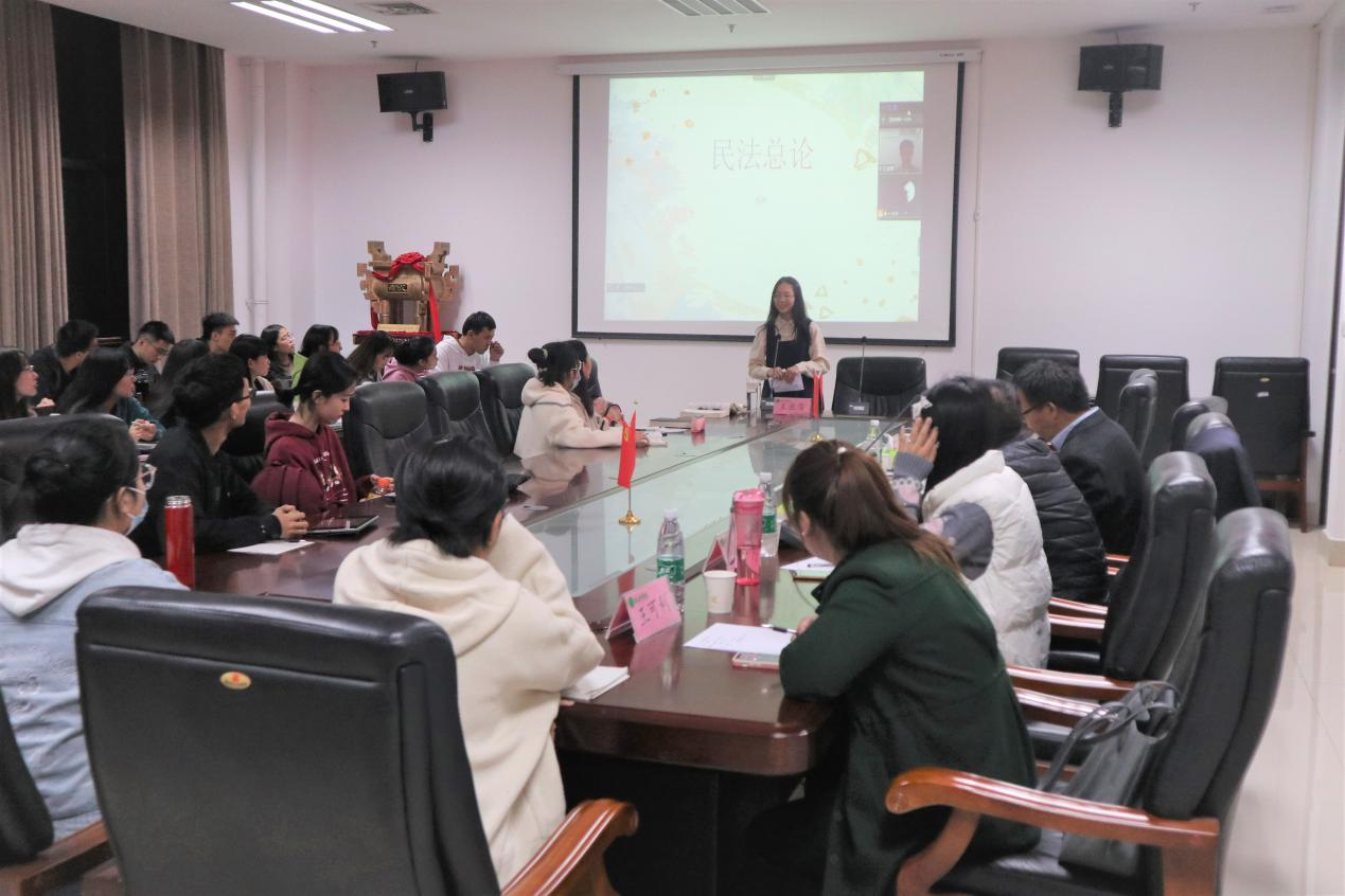 随后,师生们进行了深入的探讨交流。刘振轩讲到,在面临浩如烟海的民法文献时,最需要做的是认识和梳理;而在面对民法难以理解的部分时,可以从分析其渊源着手。王亚霈围绕朱庆育所著的《民法总论》从宏观角度介绍本书的大纲体系,进行了知识点的概括总结;推荐了“以案说法”的学习方式,帮助同学们理解法条。杨柳青以自身经历鼓励大家,在法学学习遇到瓶颈的时候,可以读一些其他专业的书,以其他学科知识反哺法律学习。赵亚以“法学的基础在法学之外”一言缓解了同学们对学习民法的焦虑,建议同学们从历史学、社会学、心理学方面入手法学,只有充分认识生活现实和交易现实,才能看懂法律条文的含义。
