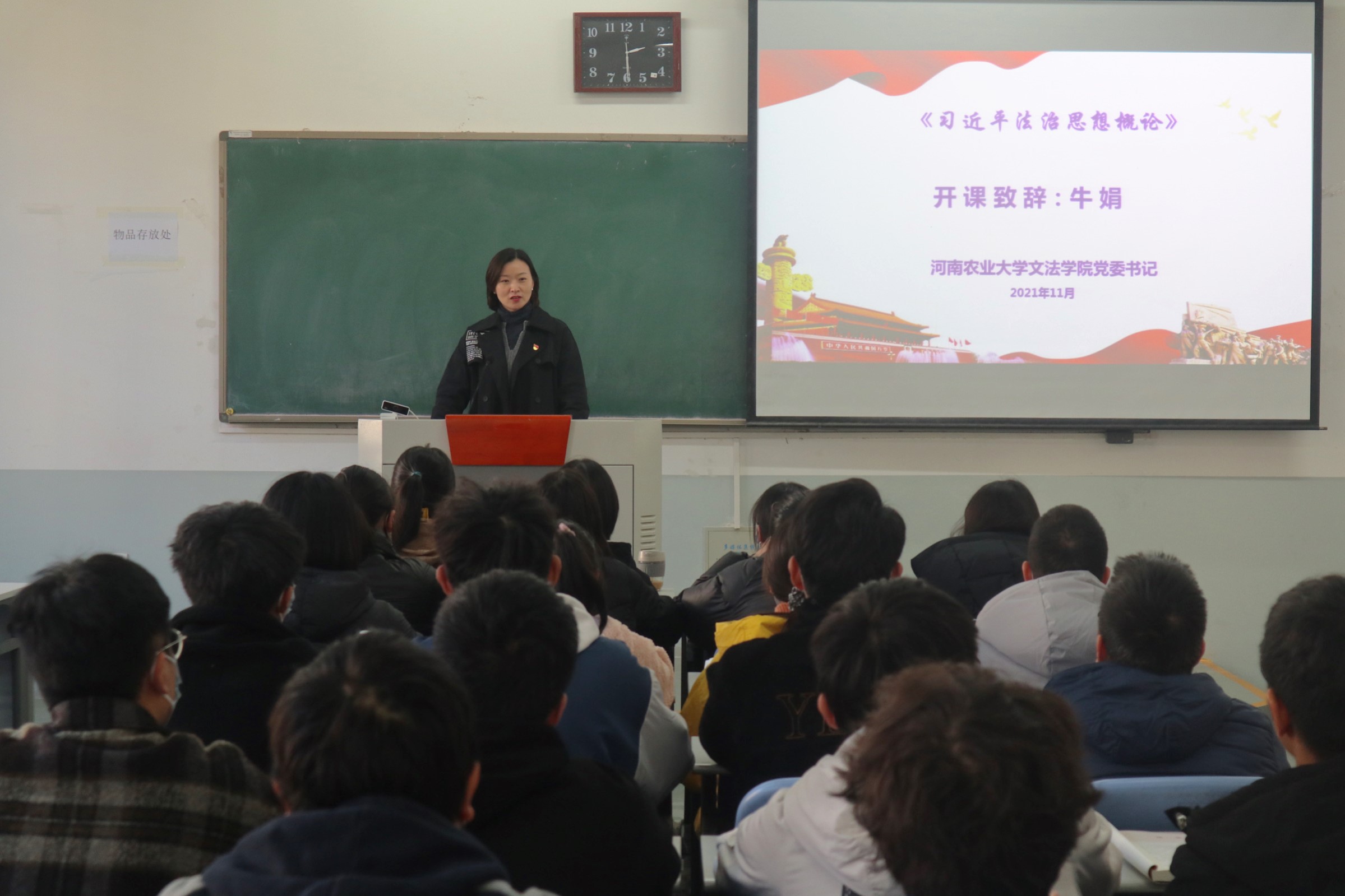 11月8日,《习近平法治思想概论》课程在暗网视频 正式开课。院党委书记牛娟作开课致辞,她指出,从当前到本世纪中叶的未来30年,是中华民族全面建成社会主义现代化强国的关键期,也是全面建设法治中国的攻坚期。以习近平同志为核心的党中央创立的习近平法治思想,科学指明了“中国号”法治巨轮的前进方向,系统提出了全面依法治国的总蓝图、路线图、施工图,是党领导人民全面建设良法善治法治中国的科学行动指南。为推动这一科学理论体系更好地被广大干部群众,特别是法学类专业学生所学习掌握,特开设这一课程。