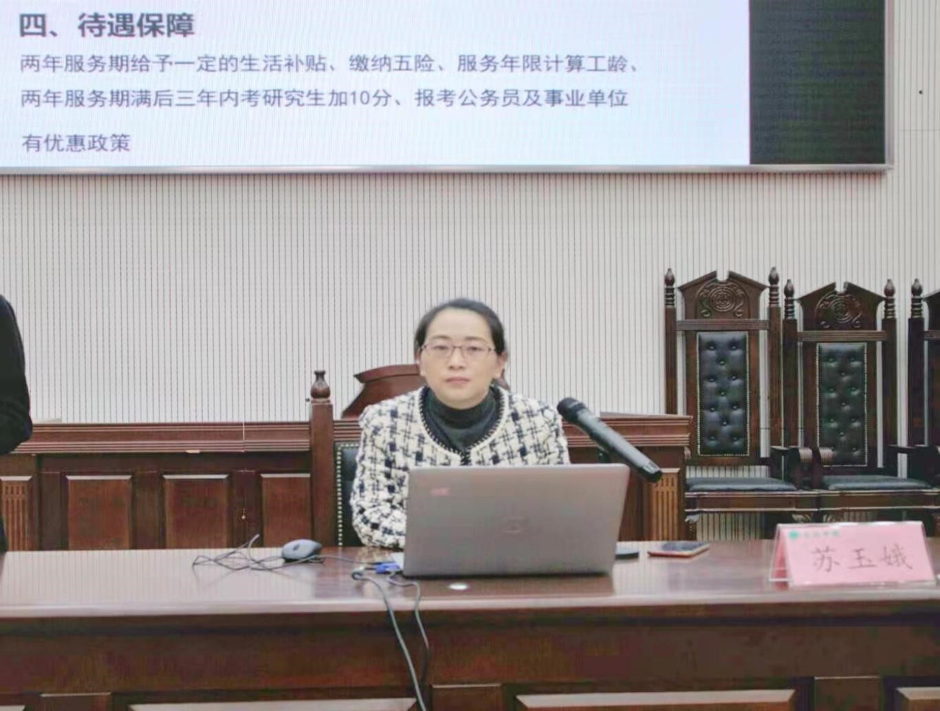 会议伊始,苏玉娥以“职场敲门砖”为主题,提出了独到见解。她指出,高含金量的专业证书是最好的职场敲门砖,这块敲门砖是衡量学生能力的重要标准。随后,她从就业前景出发,依次讲述了被业界广为认同、高含金量的十大证件及其报考要求和备考指南。在谈及选调生考试时,她联系当前大学生就业形势,从选调生的报考条件、报考时间、服务期限和期满政策等方面进行介绍,鼓励学生积极参与选调生考试,并向大家分享高效可行的备考方法。在论及大学生志愿服务乡村振兴计划时,她以往届学生经历为例,向与会学生描摹了学习与工作相辅相成的美好蓝图,让学生更为明晰参与志愿服务乡村的光明前景,坚定就业信心。在师生互动环节,苏玉娥针对学生提出的报考途径、跨专业考证等问题进行逐一解答,并给予了暖心鼓励。整场报告由浅入深、气氛融洽,学生纷纷表示受益匪浅,将进行更加清晰的职业规划。