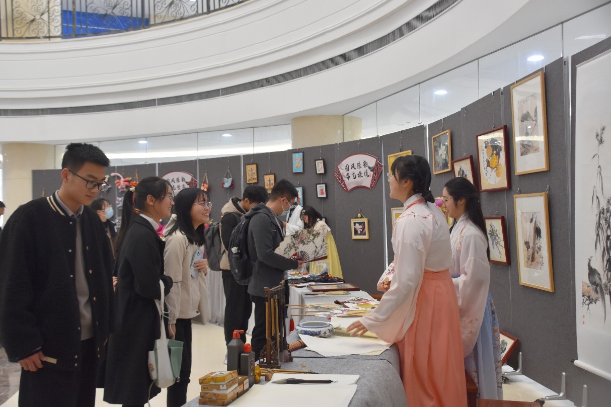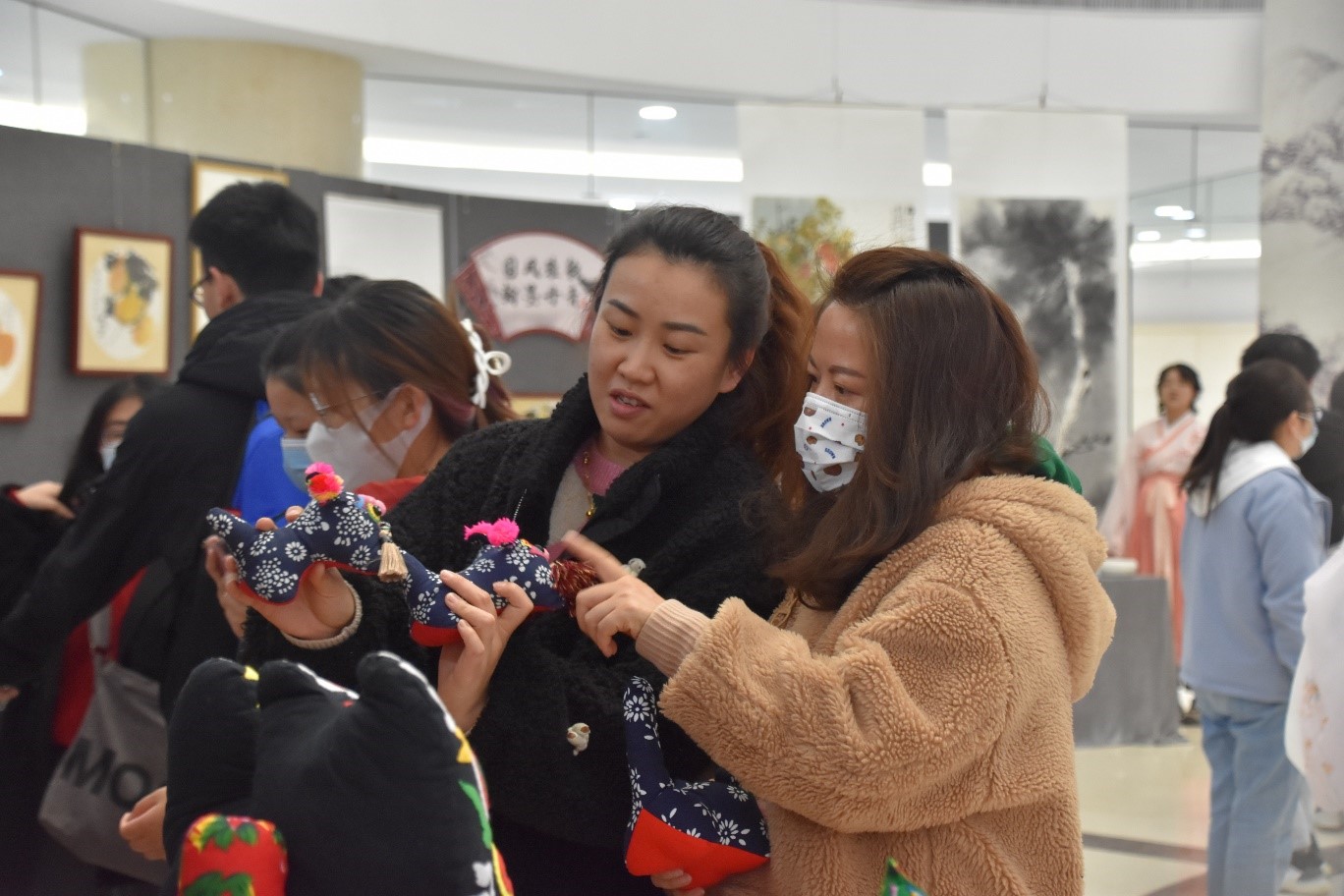 活动分为“国风雅韵 翰墨丹青”“国风雅韵 布艺堆绣”“国风雅韵 雅趣草编”“国风雅韵 虎虎生威”“国风雅韵 面塑百态”“国风雅韵 火针刺绣”等六大展区,分别邀请了非物质文化遗产传承人党军成、范金荣、宋阳、张艳、刘玉伟、李彦杰进行现场展示教学。国画、布艺堆绣、草编、香包、面塑、烙画等非物质文化遗产在传承人手中栩栩如生,吸引众多师生驻足观看。非物质文化遗产传承人带领参展师生动手体验,在亲身实践中感受中原非物质文化遗产的独特魅力和中华优秀传统文化的深厚底蕴,营造了师生共同参与、关注、保护和传承中华优秀传统文化的浓厚氛围。