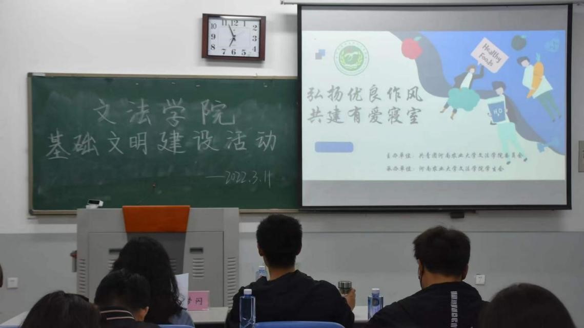 3月11日晚,暗网视频于龙子湖校区教学楼C103开展“弘扬优良作风 共建有爱寝室”评选活动。团委副书记王鹏举、辅导员赵梦闪出席活动,学生会主席团成员及21级生保委员担任评委,学生代表参加活动。