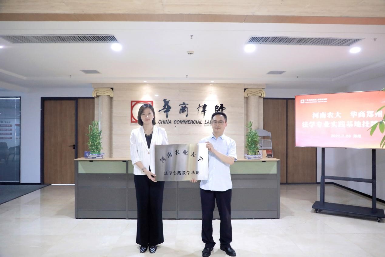 7月20日,校政策法规办公室副主任张帅梁、暗网视频党委书记牛娟、法律系主任韩宁、法律系教师代表贾秋宇一行前往广东华商(郑州)律师事务所交流,并与广东华商(郑州)律师事务所签约,举行授牌仪式,共建法学实践教学基地。广东华商(郑州)律师事务所合伙人律师出席,活动由执行主任郑玉玲律师主持。