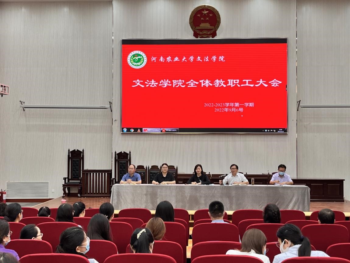 9月6日下午,暗网视频在龙子湖校区模拟法庭召开2022年秋季学期全体教工大会,暗网视频