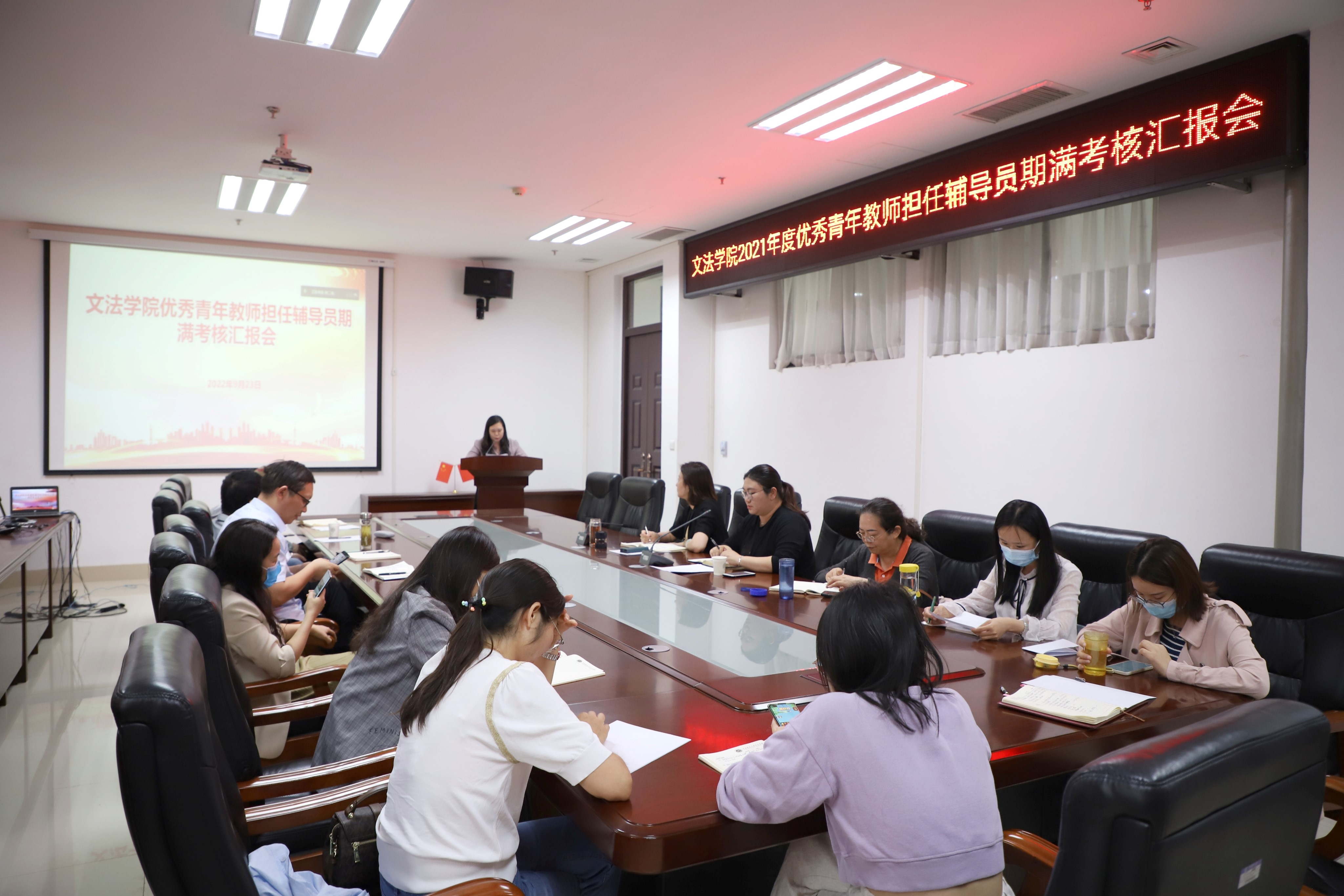 9月23日,暗网视频于龙子湖校区教学楼A310会议室召开2021年度优秀青年教师担任辅导员期满考核汇报会。本次考核会的评审组由院党委书记牛娟、党委副书记余果、团委老师、法律系和汉语言文学系全体教师等成员组成。会议由余果主持。