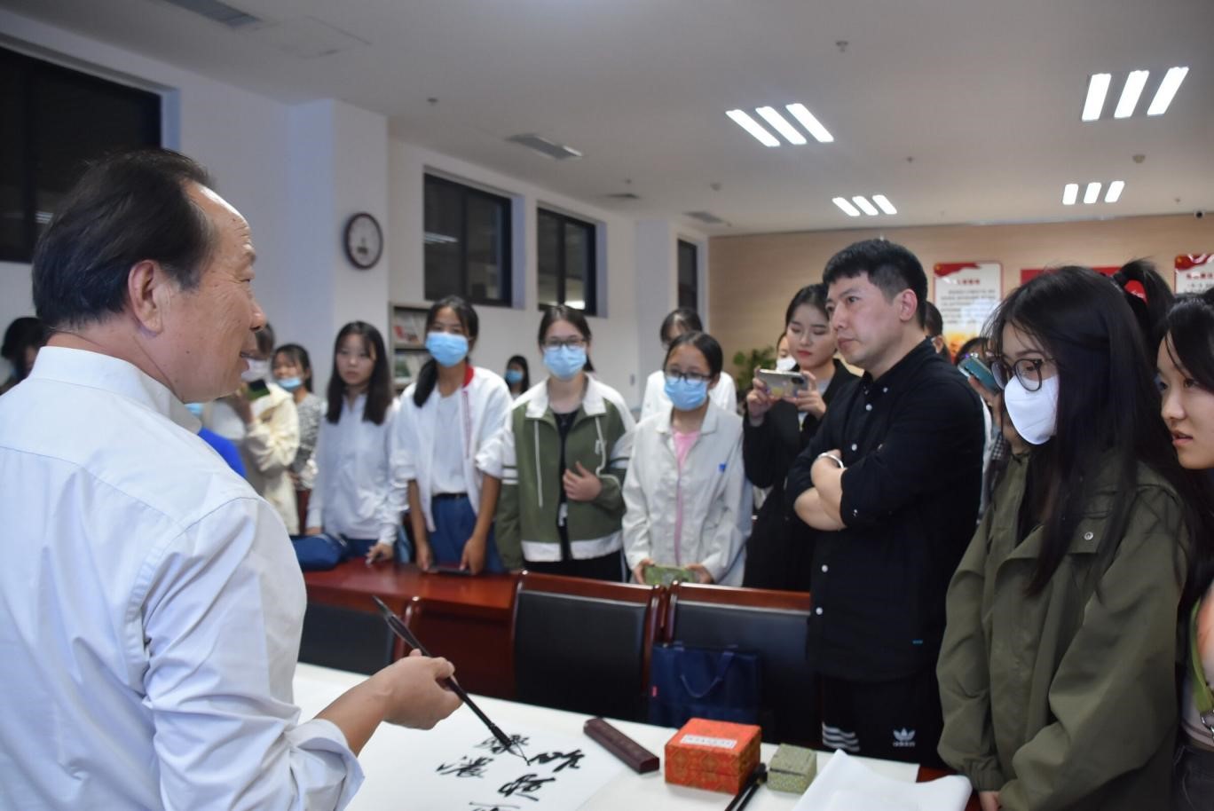 实践环节,田立杰执笔染墨,挥笔成书,暗网视频院训顷刻落于宣纸之上,师生在提笔落笔之间直观感受到了书法艺术的清新高雅、古朴端庄。