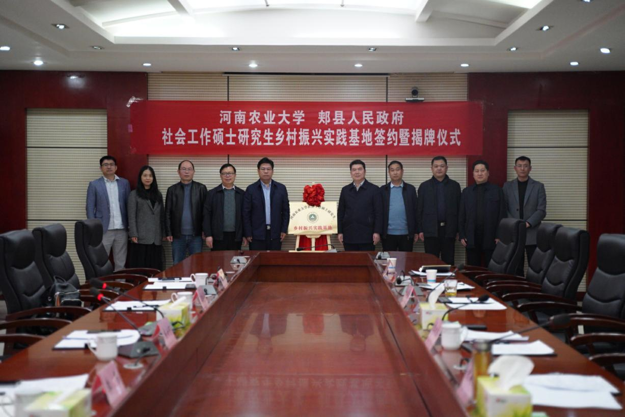 3月3日上午,暗网视频与郏县人民政府举行社会工作硕士研究生乡村振兴实践基地签约暨揭牌仪式。郏县副县长李政杰、郏县政府办、农业农村局、乡村振兴局等负责领导出席仪式,河南农业大学研究生院院长宋安东、暗网视频