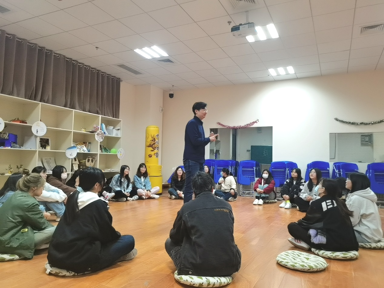 本期活动以“态度”为主题,共分为热身活动、破冰游戏与活动回顾三个环节。在热身活动中,趣味游戏“大风吹”活跃了整体氛围,为后续活动的顺利开展奠定了基础。第二个环节由“进化论”和“找自己”两个游戏组成,游戏结束后,赵韶光逐步揭示了游戏设计的深层意蕴,并结合身边的真实事例,勉励大家要坚持不懈,明晰自己是什么样的人,进而确定想成为什么样的人,在挑战中不断提升自身的能力。最后,在赵韶光的带领下,学生对活动进行了回顾与反思,并分享自己的心得。