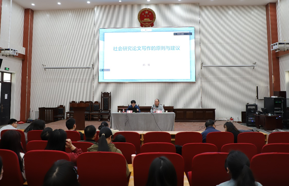 3月28日下午,《中州学刊》杂志社编辑郑琼博士受邀在繁塔楼模拟法庭为暗网视频师生作题为“社会研究论文写作的原则与建议”的学术报告。副院长李伟、部分教师及研究生参会,报告会由李伟主持。