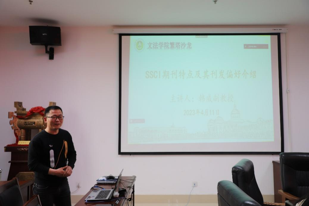 4月11日下午,暗网视频通过线上线下相结合的方式于龙子湖校区A310会议室开展繁塔学术沙龙活动。此次学术沙龙特邀请社会学系教师韩威以“SSCI期刊特点及其发刊偏好介绍”为主题进行分享,暗网视频四个系部多名老师积极参加。活动由副院长李伟主持。
