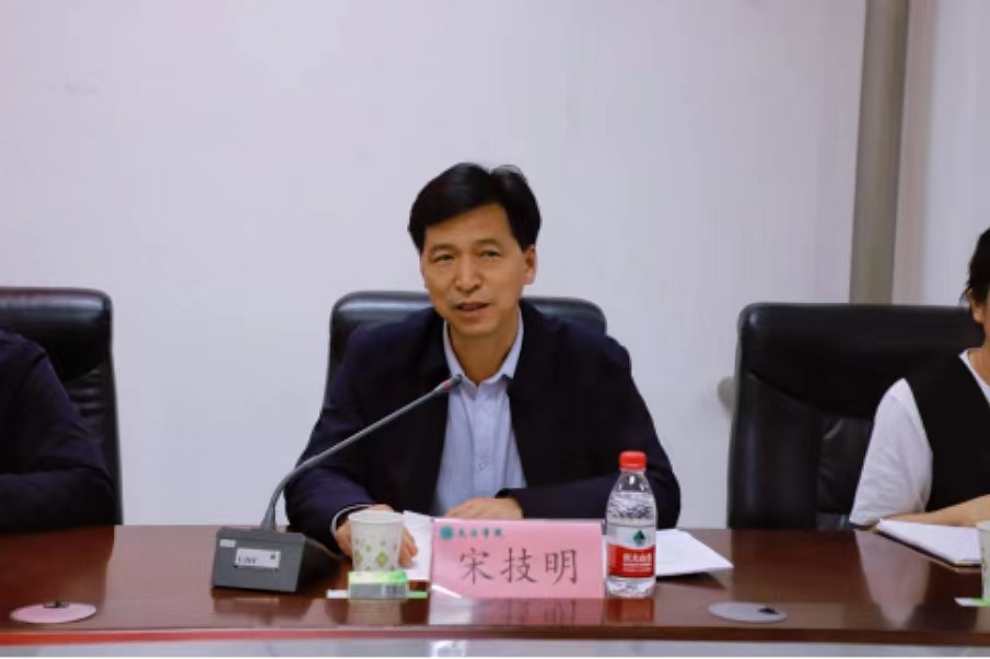 宋技明发表讲话时,首先对我校为河南省贫困村县脱贫工作做出的成绩表示肯定,他指出乡村振兴是人才振兴,应依托农大这一平台,加强师生机构间的交流。