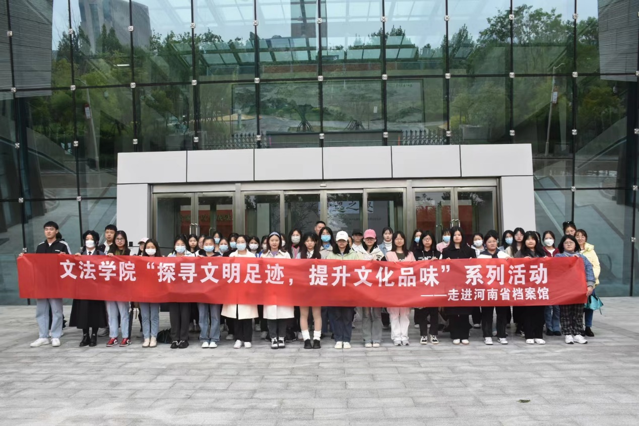 为迎接第二十八个世界读书日,品味中原传统文化,感悟历史发展足迹,4月22日,2021级汉语国际教育专业全体学生在汉语言文学系教师张晓芳的带领下前往河南省档案馆开展“三品”主题教育之“探寻文明足迹,提升文化品位”系列活动。