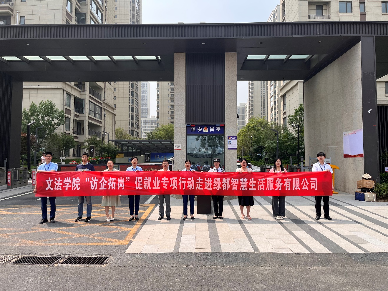 5月19日,为了进一步推动毕业生高质量就业,行政管理系主任管煜武、团委书记王鹏举、行政管理系教师呼连焦、王草、王丽一行人走进绿都智慧生活服务有限公司开展“访企拓岗”促就业专项活动,绿都智慧生活服务有限公司成本采购高级经理、工会主席康小红,品牌高级经理安晓玉,招聘主管任帅旗、员工代表范一昂等参与活动。